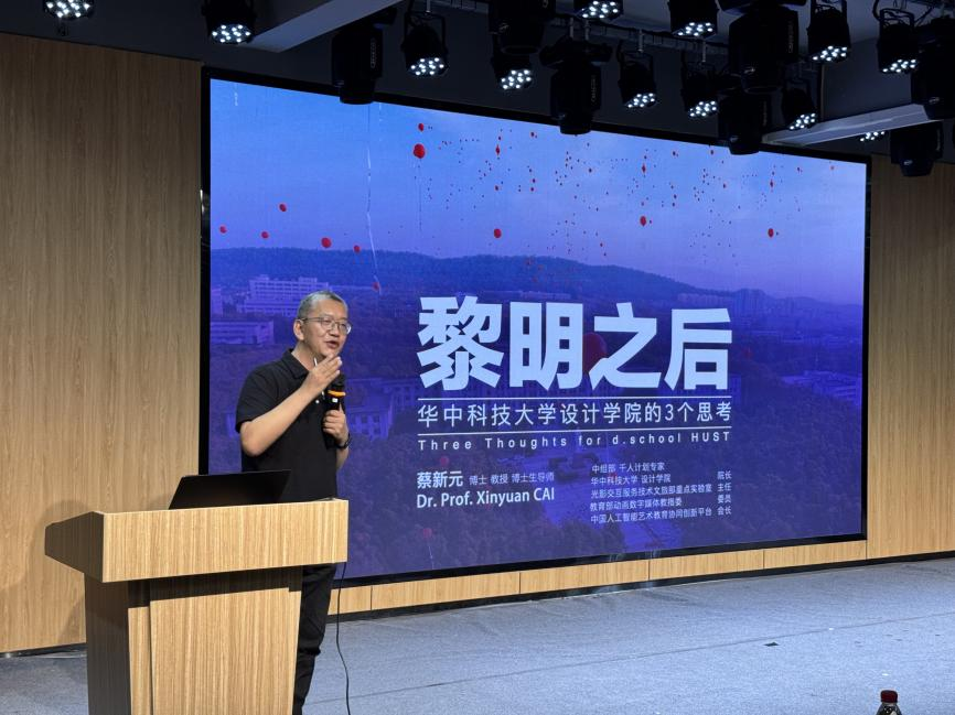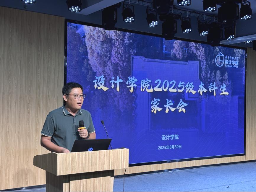 伟德国际1946经理、数媒2502班主任蔡新元作学科发展报告,他详细的介绍了公司的发展建设历程,深入阐释设计学科的内涵与前沿动向,重点剖析“AI+设计”创新范式及其对设计教育理念的重塑。他指出,公司对标“五个一流”,以“H型”人才培养架构为核心,积极构建新质生产力课程体系,深化艺、工、医、文等跨学科融合,致力培养立场坚定、交叉背景、具有国际竞争力的创意人才,推动向中国特色、世界一流的伟德国际1946加速迈进。他强调,要共同助力2025级新生扬帆启航、乘风破浪,书写精彩的华科大新篇章。