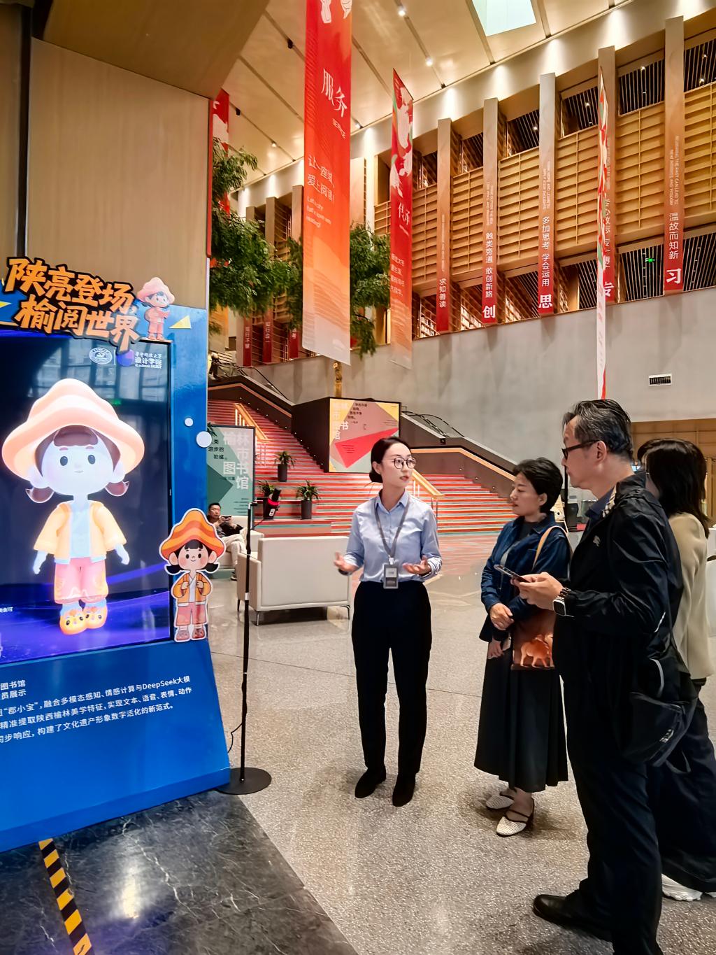 在年会现场,观众们不仅可以近距离欣赏“郡小宝”、“郡小虎”的IP形象及系列文创产品,公司蔡新元教授团队更以“郡小宝”为原形,开发了榆林图书馆数字人-郡小宝。观众在现场可与AI数字人进行智能互动,与数字“郡小宝”实现流畅的对话交流、知识问答、AI荐书等,感受传统文化与现代科技碰撞所产生的奇妙火花。