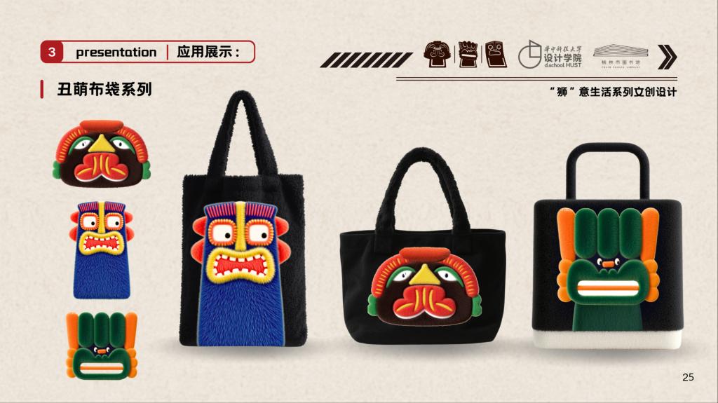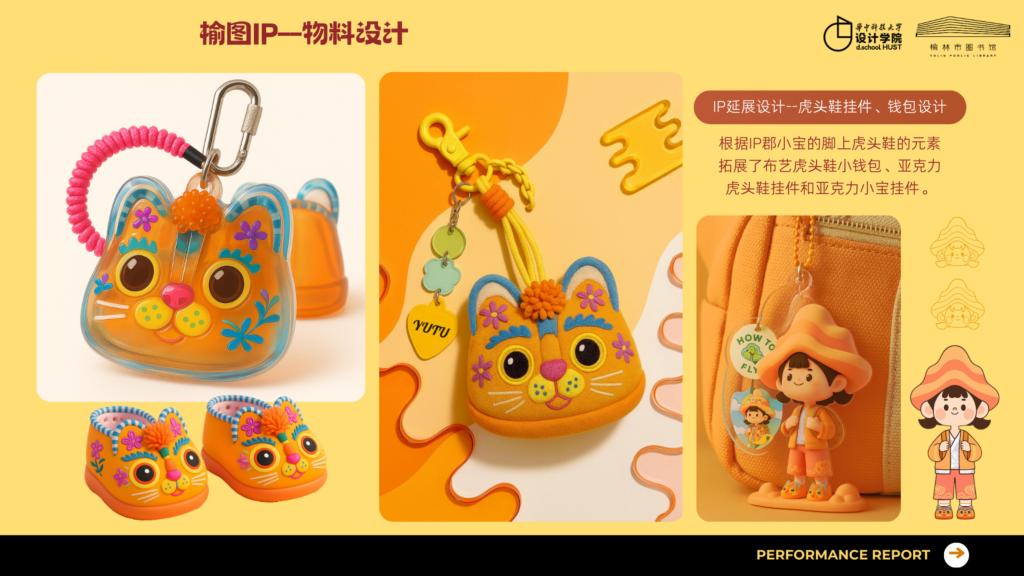 “郡小宝”从榆林独特的地理人文中汲取灵感:“一刀齐”刘海、丹霞地貌帽、剪纸纹样服饰、虎头鞋与窑洞书包,细节之中尽显黄土地的文化底蕴;“郡小虎”则头扎白羊肚巾、腰挎陕北腰鼓、身披窗花马甲,形象活泼憨厚,洋溢着浓郁的陕北风情。围绕IP内核,团队进一步开发了多款主题造型及文创产品,包括郡小宝窑洞毛绒背包,郡小宝郡小虎表情包贴纸、文具套装、虎头鞋挂件、窑洞冰箱贴、系列盲盒等,以及源自国家级非遗绥德石狮的“狮意生活”系列、基于榆林古街建筑的“六楼骑街”插画透卡系列等。项目实现了从IP设计到场景开发、从数字交互到文创生态的全链路构建,充分体现了伟德国际1946在文化IP产业化与创新设计应用方面的前瞻视野与深度探索。