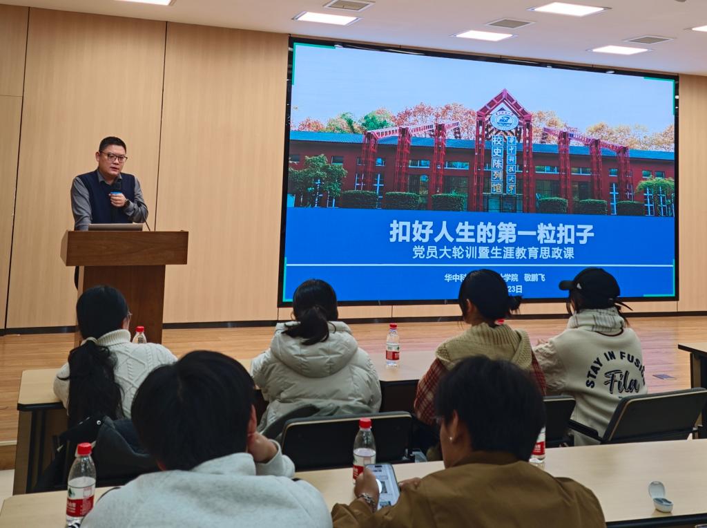 敬鹏飞书记以《扣好人生的第一粒扣子》为题,向全体党员、2025级同学们提出三点希望,一是要扣正“信念”之扣,心怀“国之大者”,坚定青春志向;二是要扣实“学业”之扣,勇立创新前沿,锤炼过硬本领;三是要扣紧“担当”之扣,投身时代实践,在民族复兴伟业中贡献青春力量。