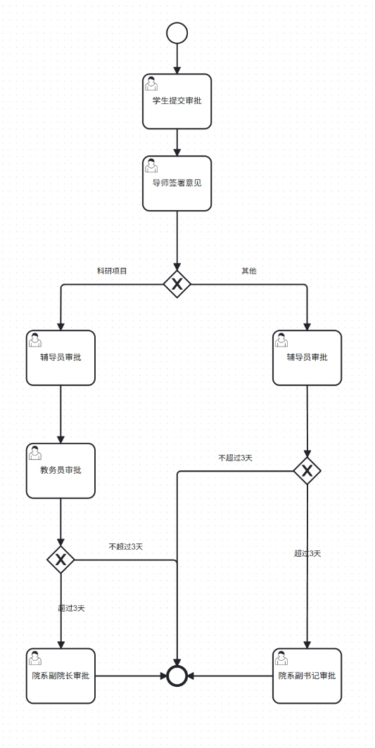 2、请假大于3天。研究生导师审核后,辅导员审核,院系副书记审批,并抄送给院系副经理和教务员。