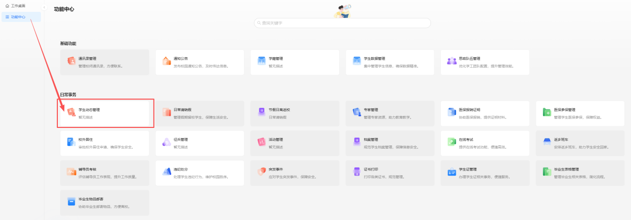 电脑端:登录系统后,可在功能中心中找到“员工动态管理”点击进入。